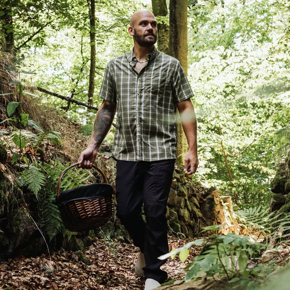 Ez a rövid ujjú ing hagyományos megjelenést és modern kényelmet kínál. Elöl teljes gombos záródással és praktikus nyitott mellkasi zsebbel rendelkezik.